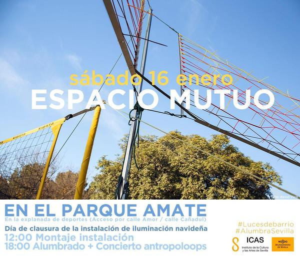 Este Sábado 16 de Enero os invitamos a la clausura de la instalación Espacio-mutuo en Parque Amate. Desde las 12 del mediodía estaremos montando las redes en la explanada de deportes (entrada por calle Amor-calle Cañadul).