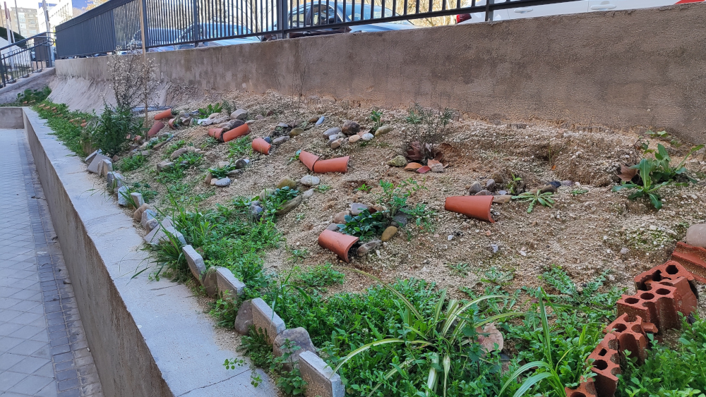 Bueno, pues Marie Kondo sería incapaz de competir en modelos de felicidad y optimización de espacios con Julia, que desde hace un año se inventó un jardín inspirada por el entusiasmo de su vecina Amparo, que un año antes que ella empezó a ajardinar un parterre de escombros frente a su edifcio de viviendas.